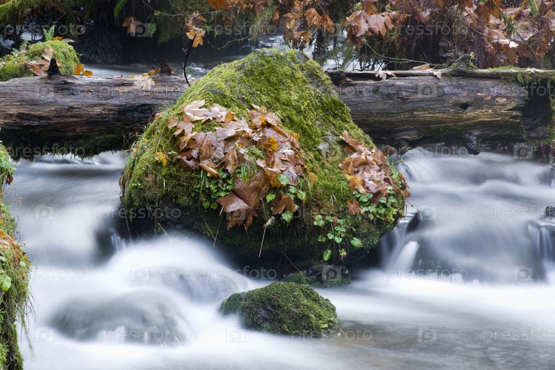 Камень, покрытый мхом, в горной реке