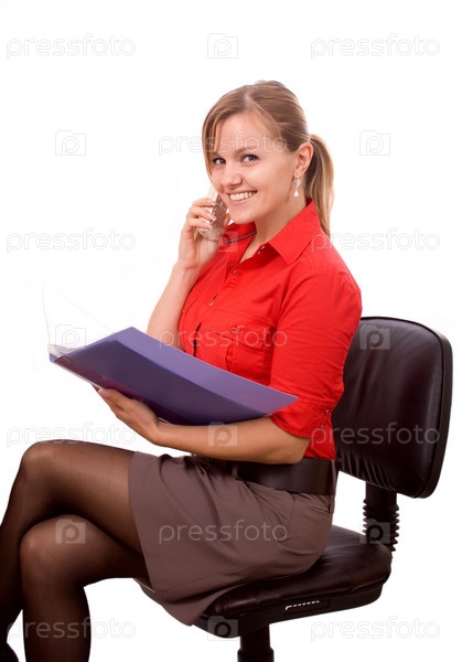 Портрет молодой бизнес-леди на белом фоне