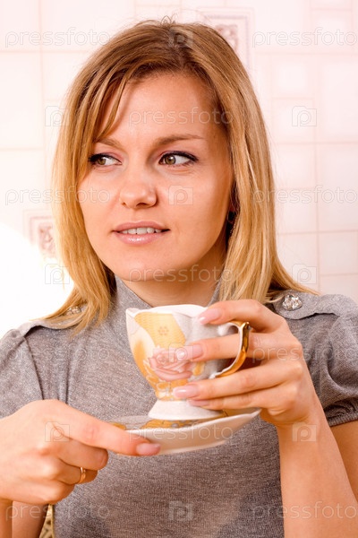 Портрет молодой девушки с кружкой чая