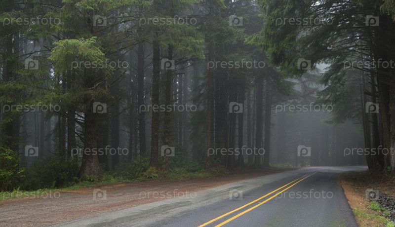 Туманная дорога через лес
