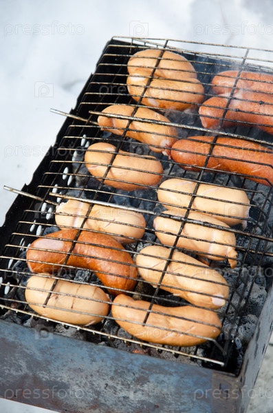 Жареные колбаски на гриле
