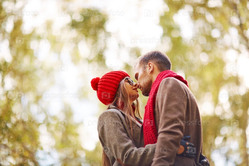 Счастливая пара в осеннем парке