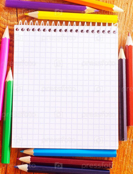 Блокнот и цветные карандаши