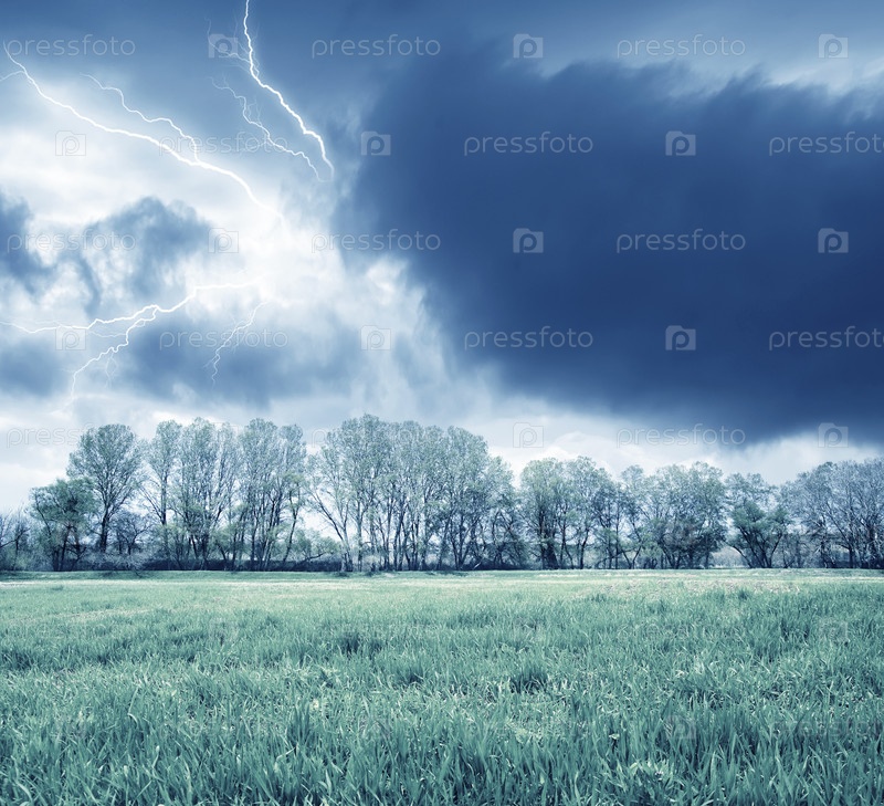 Зеленое поле и шторм