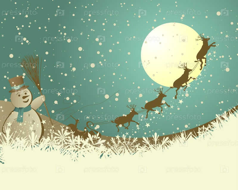 Рождественская открытка со снеговиком