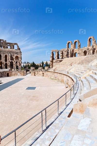 Древние стены и арки в тунисском амфитеатре в Эль-Джеме, Тунис