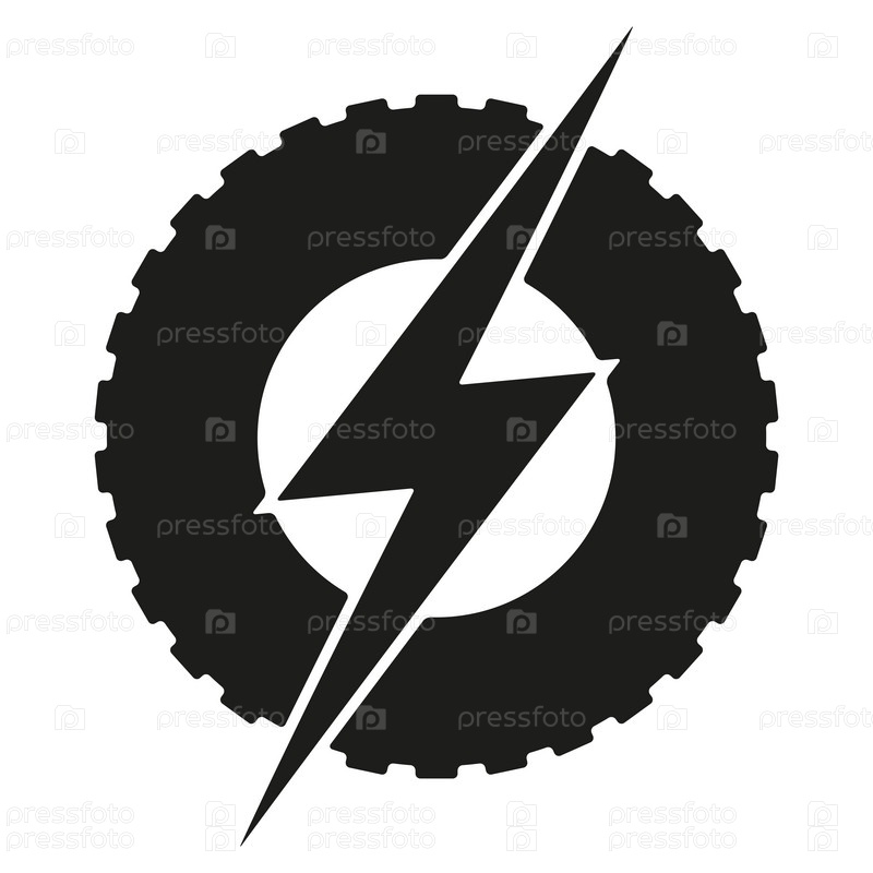 Логотип вокруг колеса с молнией. Тема ЭКО электрического транспорта