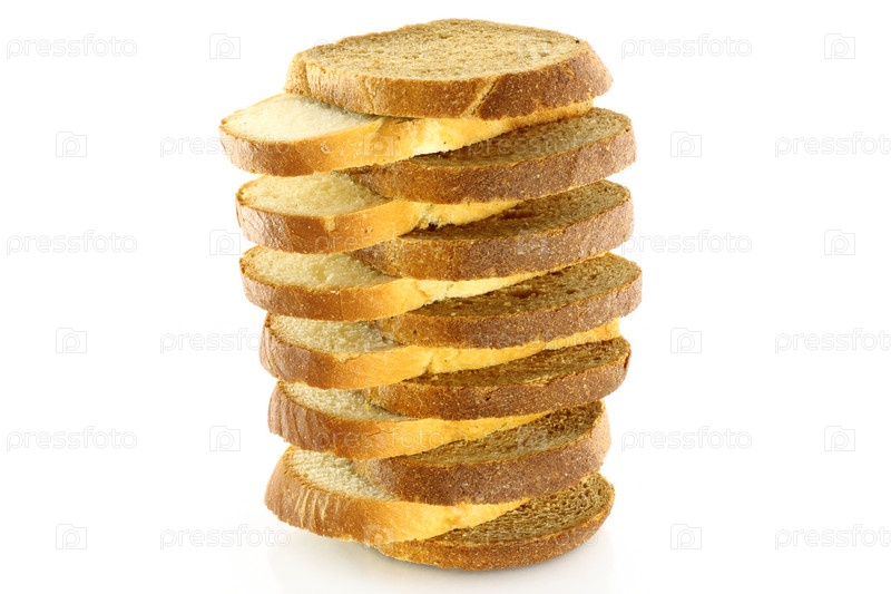Ломтики хлеба на белом фоне