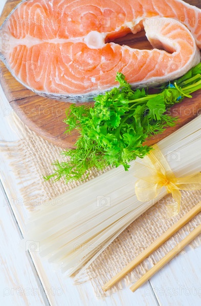Рисовая лапша и свежая лососина