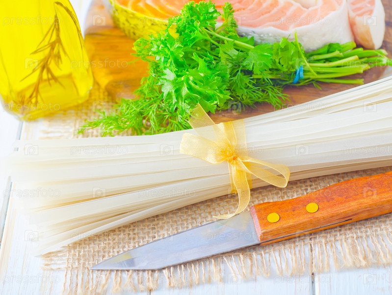 Рисовая лапша и свежая лососина