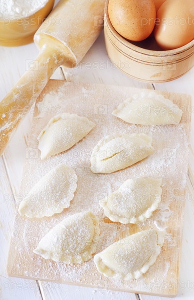 Крупным планом сырья вареников, традиционная украинская еда