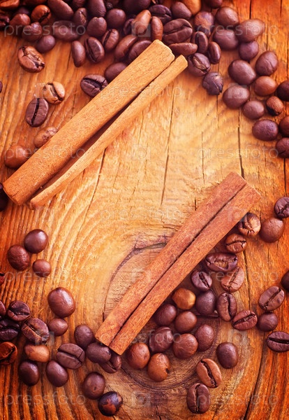Кадр из кофейных зерен и корицы