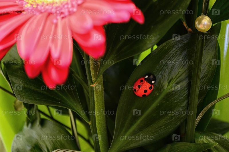 Божья коровка на листке цветка