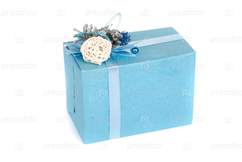 Синяя подарочная коробка на белом фоне