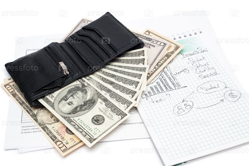 Черный бумажник и деньги