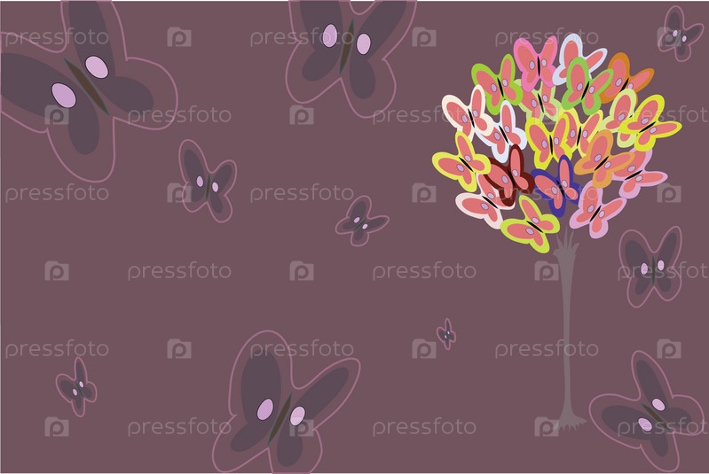 Дерево с разноцветными бабочка