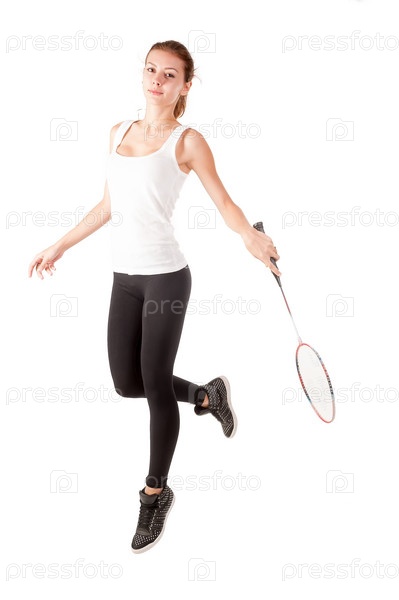 Красивая девушка с бадминтон ракетка в руках