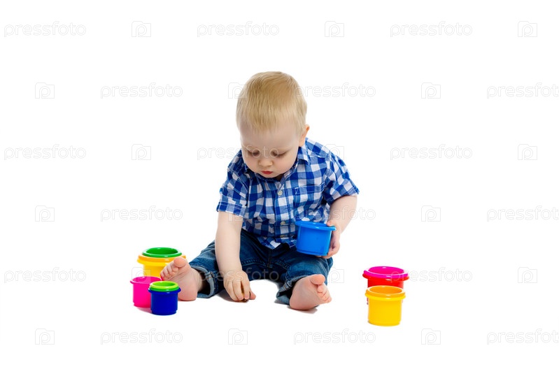Маленький мальчик играет на полу