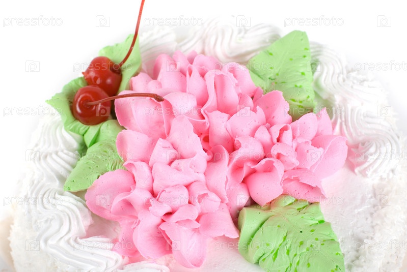 Торт с вишней на белом фоне