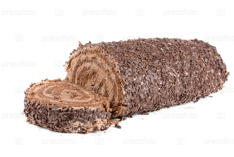Шоколадный рулет на белом фоне