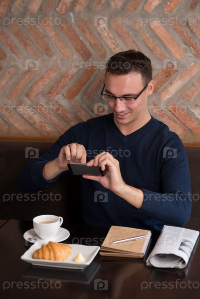 Мужчина фотографирует свой завтрак