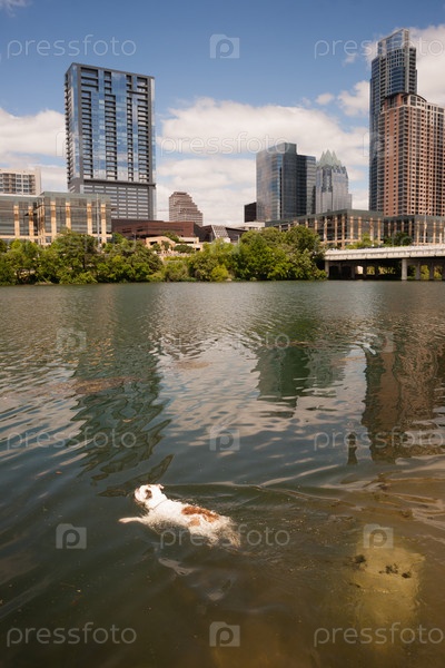 Американский бульдог плавает в реке