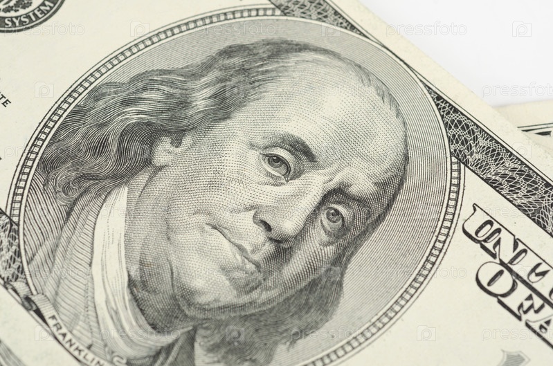 Портрет Бенджамина Франклина на сто долларовой банкноте