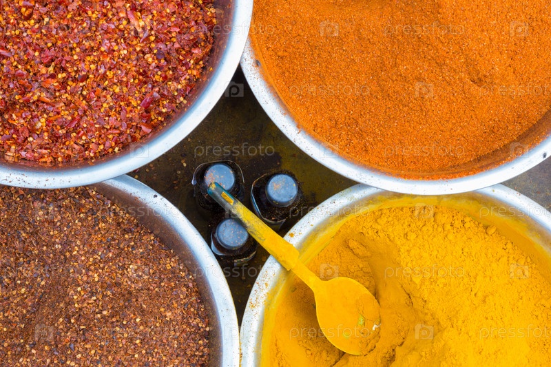 Восточные пряности в белых керамических чашах