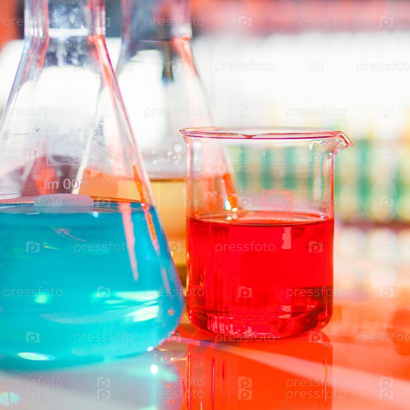 Лабораторные колбы с жидкостями
