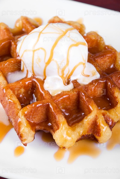 Вафли с мороженым на тарелке