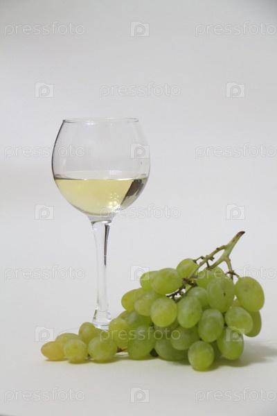 Бокал белого вина и виноград