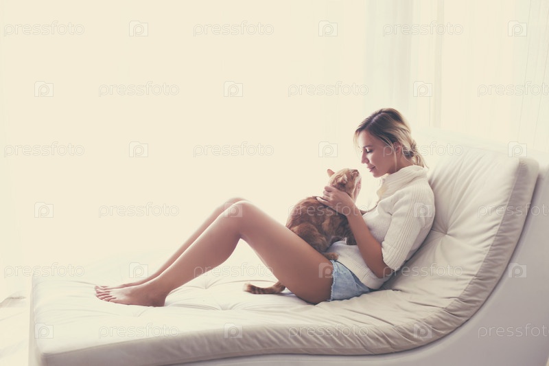 Женщина играет с кошкой