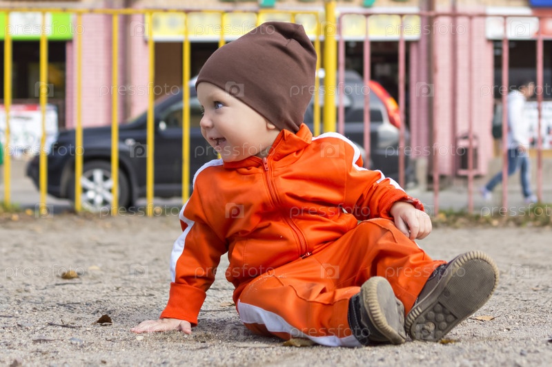 Маленький мальчик сидит на земле
