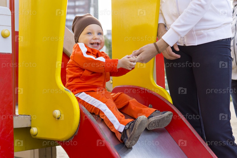 Малыш с улыбкой на детской горке