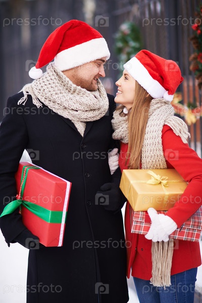 Счастливая пара в Рождество