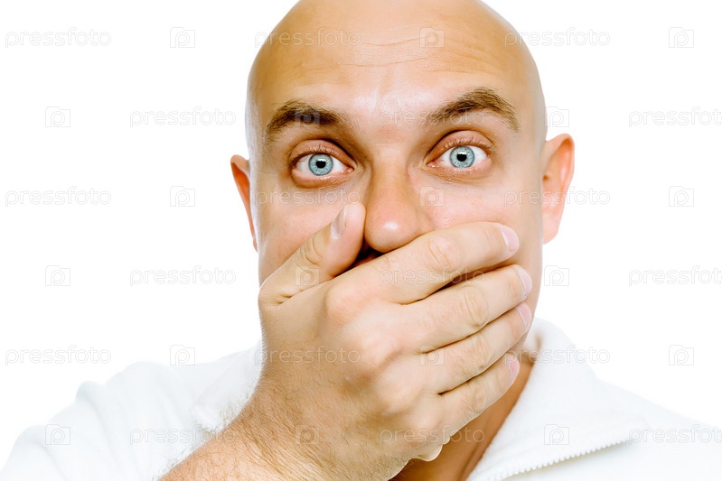 Шокированный лысый мужчина