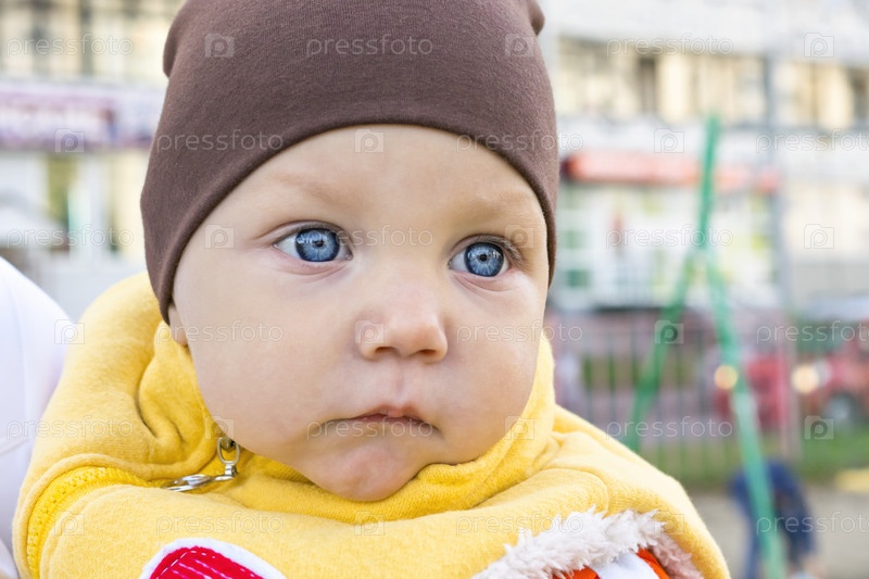 Портрет голубоглазого малыша на улице