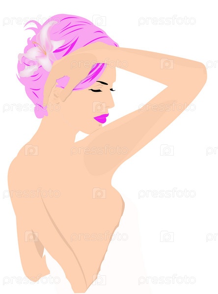 Красивая женщина с розовыми волосами. Абстрактный фон