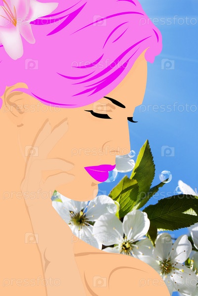 Красивая женщина с розовыми волосами. Абстрактный фон