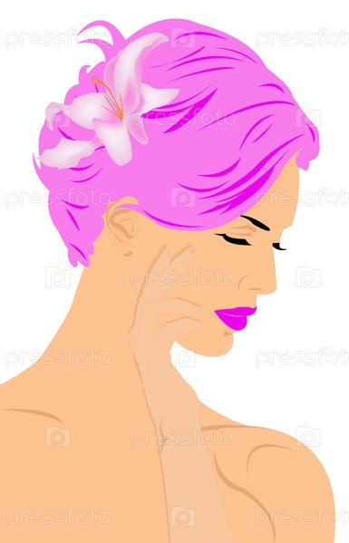 Красивая женщина с розовыми волосами. Абстрактный фон