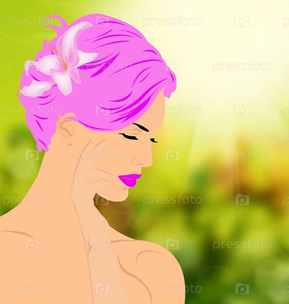 Красивая женщина с розовыми волосами. Абстрактный фон