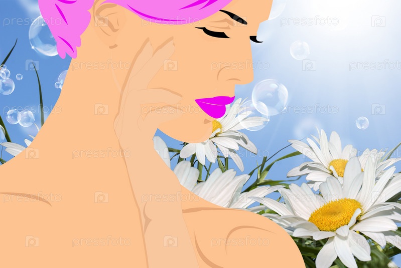 Красивая женщина с розовыми волосами. Абстрактный фон