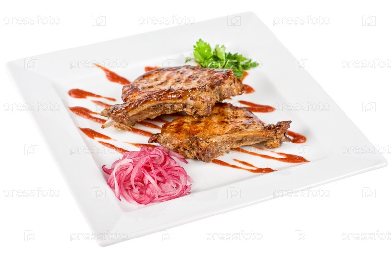 Жареное мясо свинины на тарелке