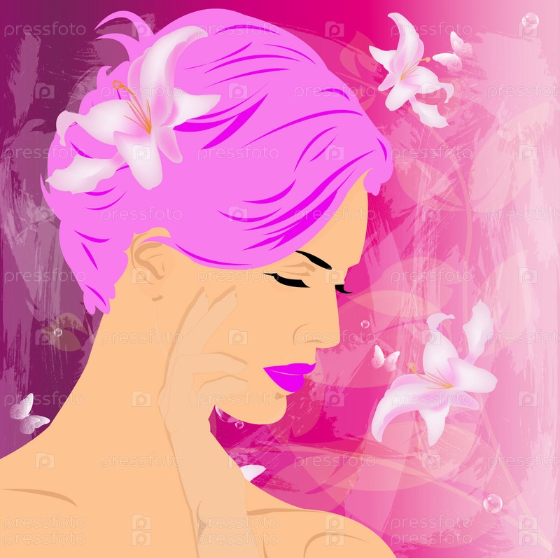 Красивая женщина с розовыми волосами. Абстрактный фон