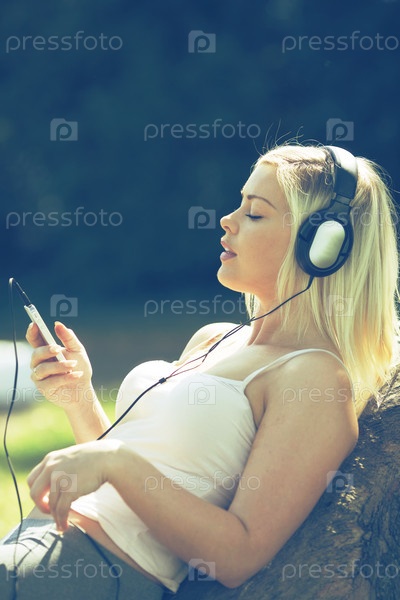 Молодая женщина, слушать музыку или аудио книги