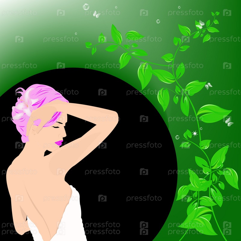 Красивая женщина с розовыми волосами. Абстрактный фон