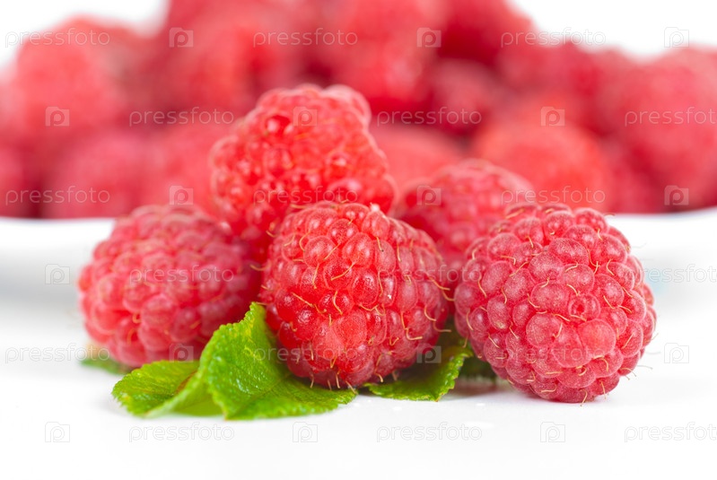 Ягоды свежей малины крупным планом на белом фоне