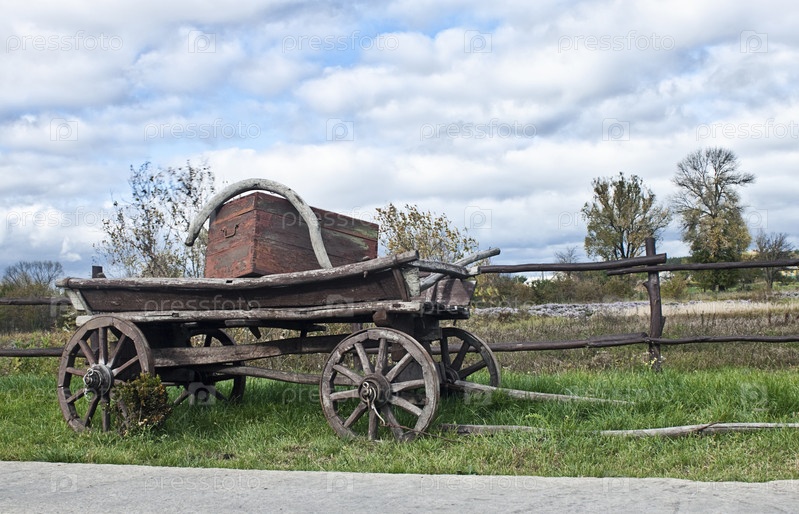 Старая телега с сундуком