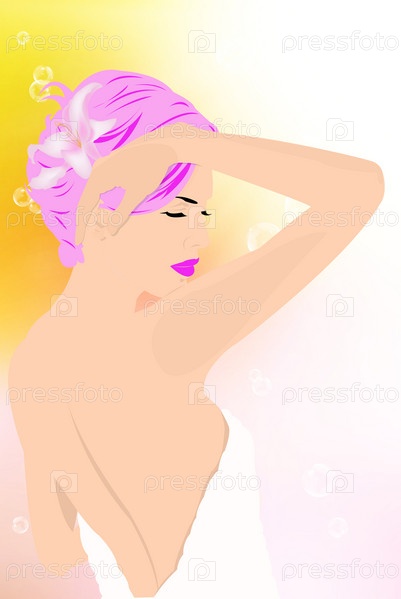 Красивая женщина с розовыми волосами. Абстрактный фон