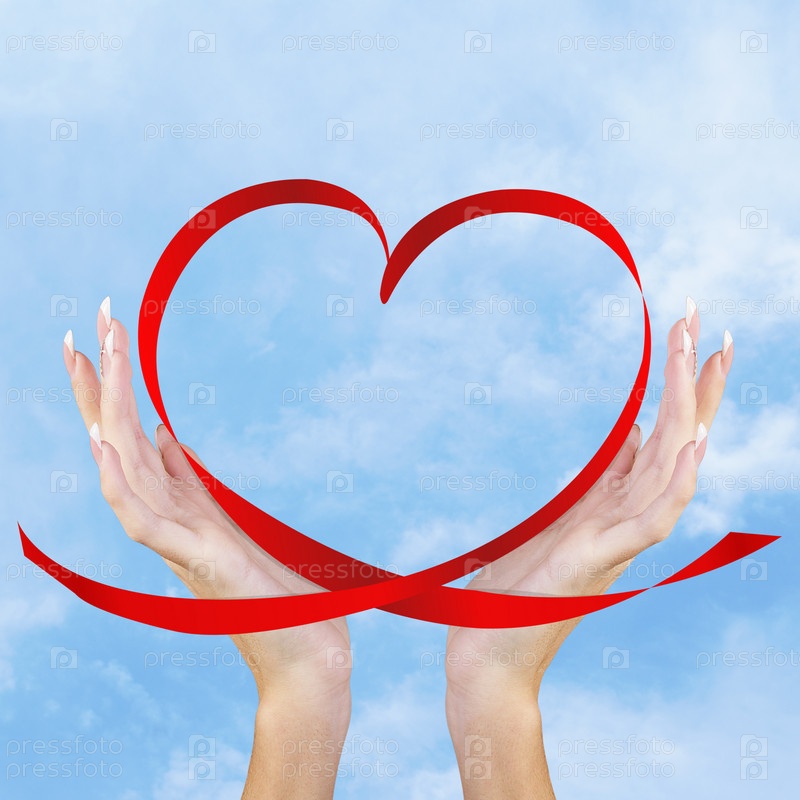 Сердце из красной ленты в руках